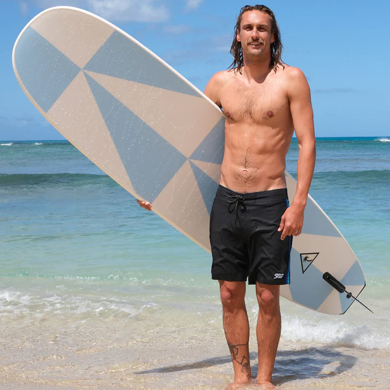 ストリンガー無し、合成樹脂ストリンガーが1〜2本入っているだけのソフトボードが多い中、高性能サーフボードと同じ製法木製ストリンガーを3本搭載。ジェイミー・オブライエンがハワイ・ノースショアのパイプラインやワイメアで証明した群を抜く強度と操縦性を実現。サーフボードが本来持つ絶妙なバランスのしなりと戻りを持つ、滑性能が抜群に高いソフトボード。